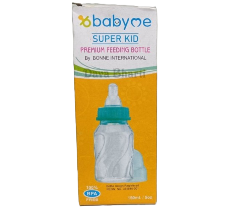 POLYPROPYLENE FEEDER WITH TENDER KARE LIQUID SILICONE NIPPLE With Spout and Spoon Made from plastic materials meant for food contact applications The BONNE KID No. 1 Bottles are made of food grade polypropylene material and are manufactured on fully automatic imported Japanese Plant. The BONNE KID No. 1 Bottles are smooth neck, odourless with prominent measure marks and embody finest features of shape profile, transparency &Strength. In quality it meets International standards. IMPORTANT INFORMATION: - The bottle should be cleaned and thoroughly washed before &after each use as per cleaning instructions given below. -Do not heat in a microwave oven or put in direct contact with a hot surface. CLEANING INSTRUCTIONS: Follow the cleaning instructions before each use. - Wash bottles and accessories thoroughly in warm soapy water to ensure all milk deposits are removed. - Squeeze the nipple to ensure any residual milk has been removed. - Do not clean or allow to come in contact with solvents or harsh chemicals. - Replace Nipple if it becomes sticky, enlarged cracked or shows sign of wear. WARNING: a) Always use this product under adult supervision. b) Always check food temperature before feeding. c) Keep all components not use out of the reach of children. d) Heating in a microwave oven may produce localized high temperatures. e) Do not leave feeding nipple and other components in direct sun light or heat, as this may damage or weaken the components and Nipple.